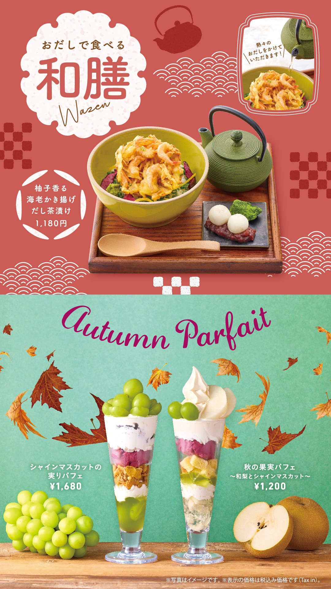 ※からふね屋CAFE大阪店、さんすて岡山店は「柚子香る海老かき揚げ だし茶漬け」の販売はございません。
